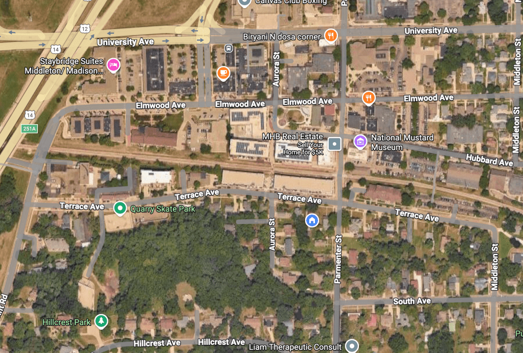 Quarry Hill Conservancy is located just south of Terrace Avenue, between Aurora Street and High Point Road, extending up the hill to Hillcrest Avenue. It is visible from all over downtown Middleton. And from the air, it is obvious just how much green space this area lends to our City.